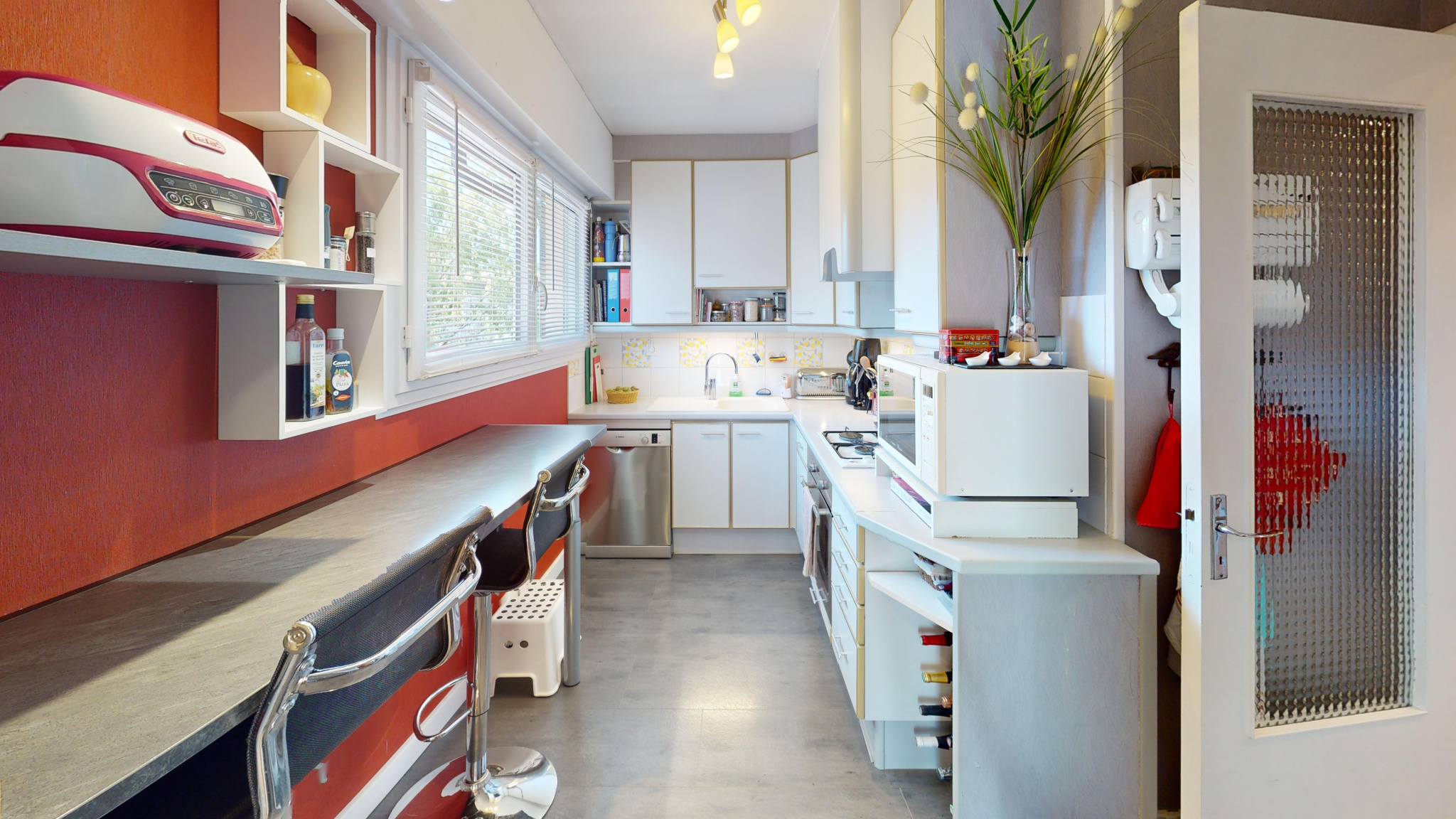 La cuisine est aménagée et équipée, fonctionnelle et ouverte sur la pièce de vie.
